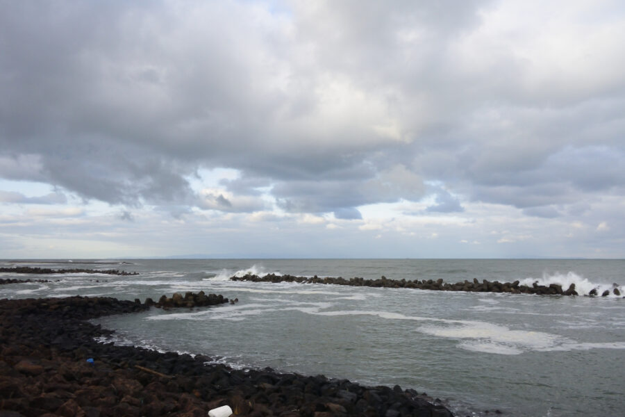 海岸に着くと北西の季節風が吹いていました。
