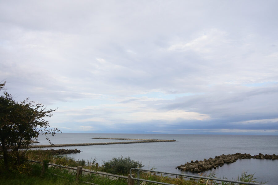 今日、この海に面した道路が新潟シティマラソンのコースになっています。