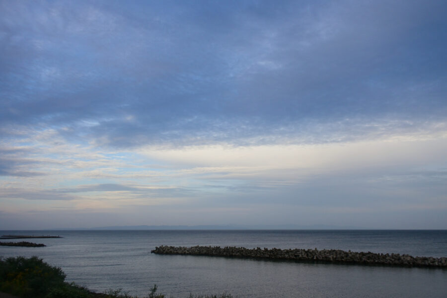 海に近づくと風が強くなりました。沖に向かって吹いています。