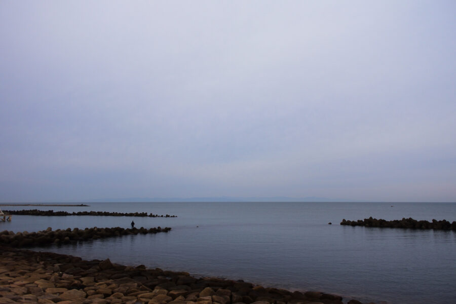 海は穏やかでした。釣り人が竿を振る音が聞こえそうです。