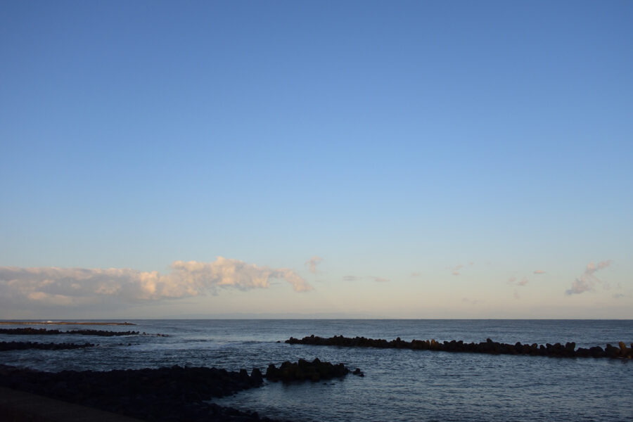 海はときどき白波が立つ程度です。釣り人の姿は見当たりません。