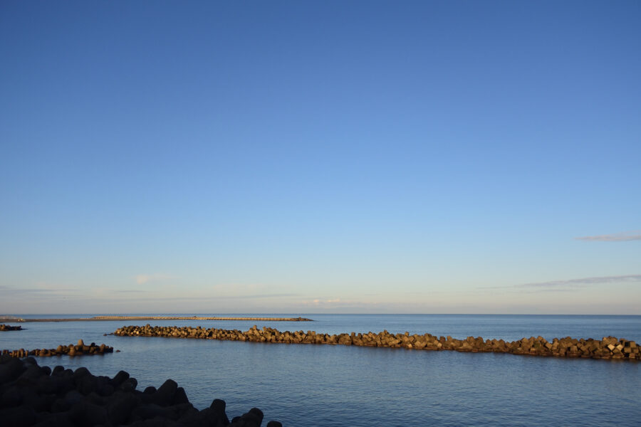 手前の波消しブロックはまだ暗い。