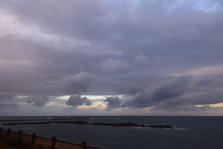 海岸に着くと左から強い風。低い雲がこちらに向かってきます。