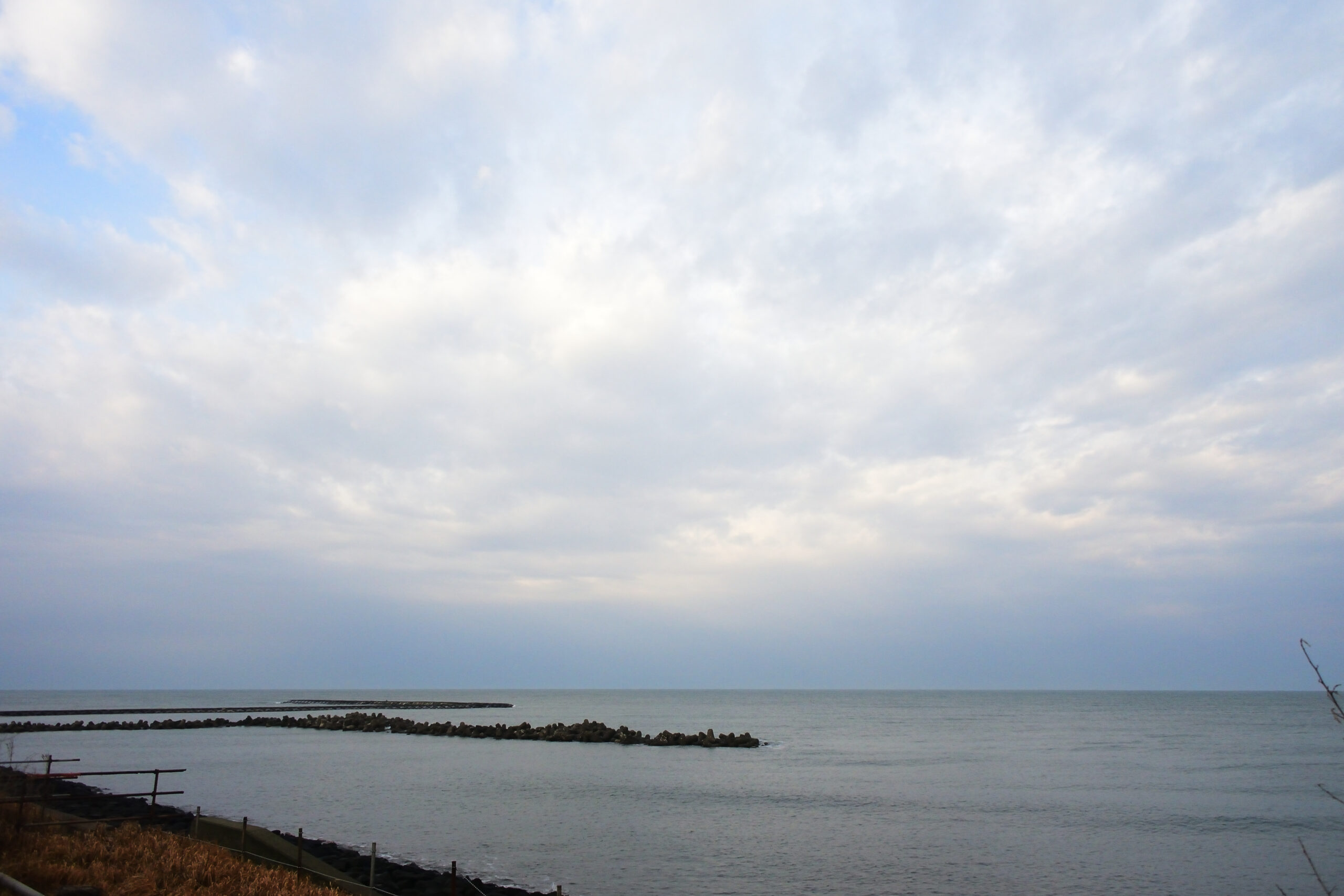 人影無し、白い鷺みたいな鳥が一羽。佐渡ヶ島は見えませんでした。