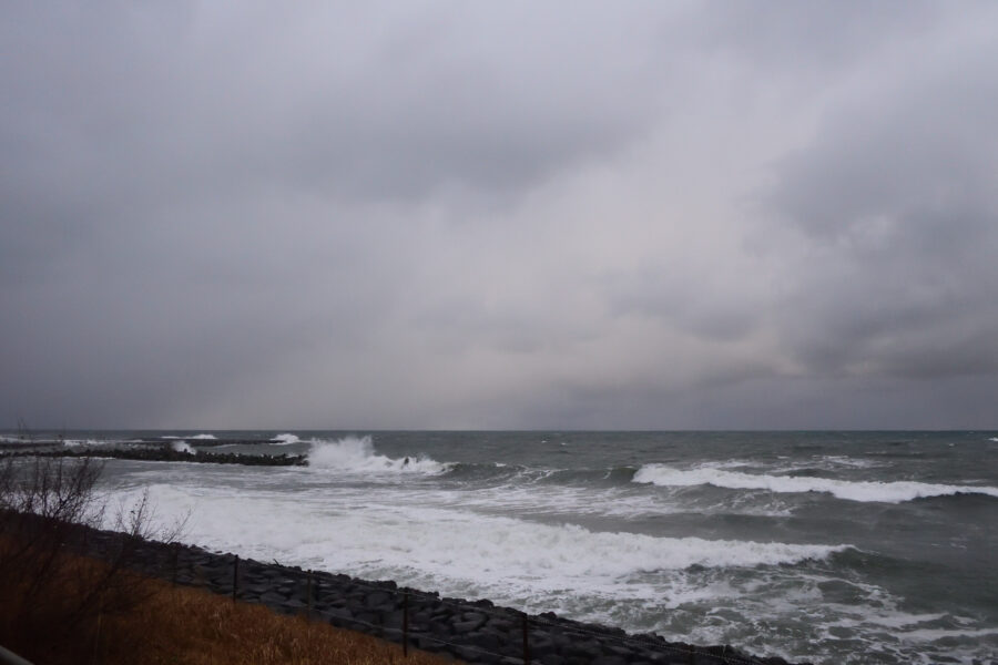 海はちょい荒れ、佐渡ヶ島は見えずです。