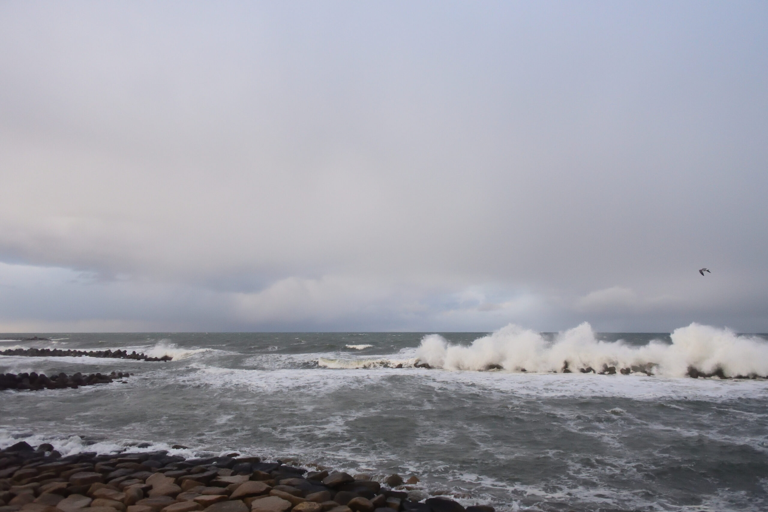 海岸に近づくと海鳴りが聞こえます。今日は荒れていました。