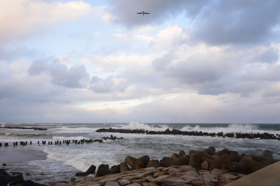 海に近づくにつれて海鳴りが大きくなります。大荒れです。