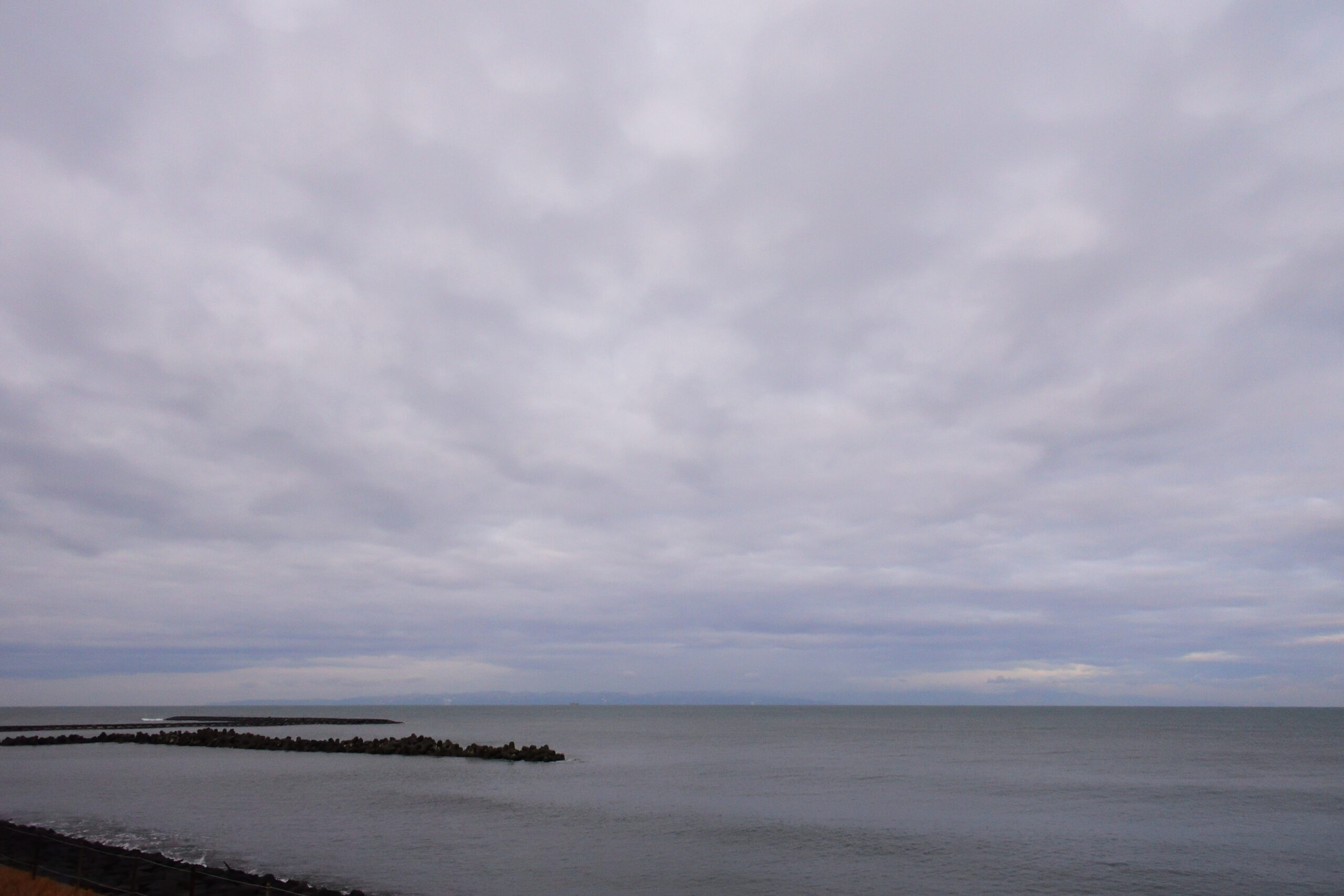 佐渡ヶ島、小佐渡がはっきりと見えていました。大佐渡はぼんやりです。