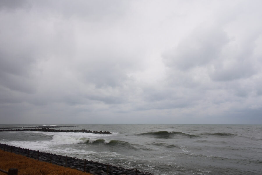 風が止んで大荒れは治まりましたが高波は残っていました。