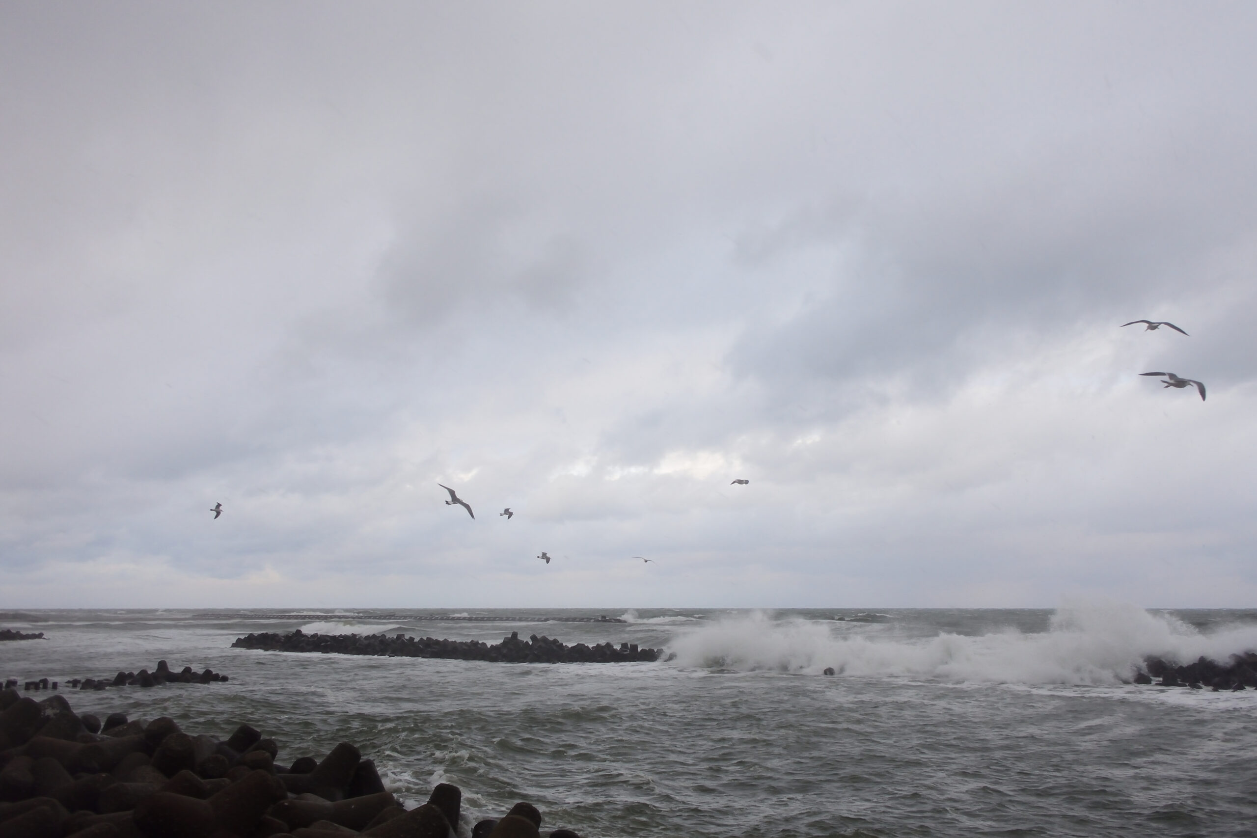 追い風で歩るくと、何もしなくても進んで行きます。楽に海岸を歩いてきました。