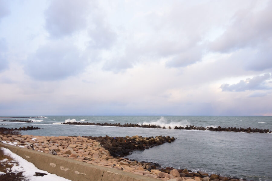 雪の遊歩道は兎に角疲れます。やっと海岸にたどり着きました。