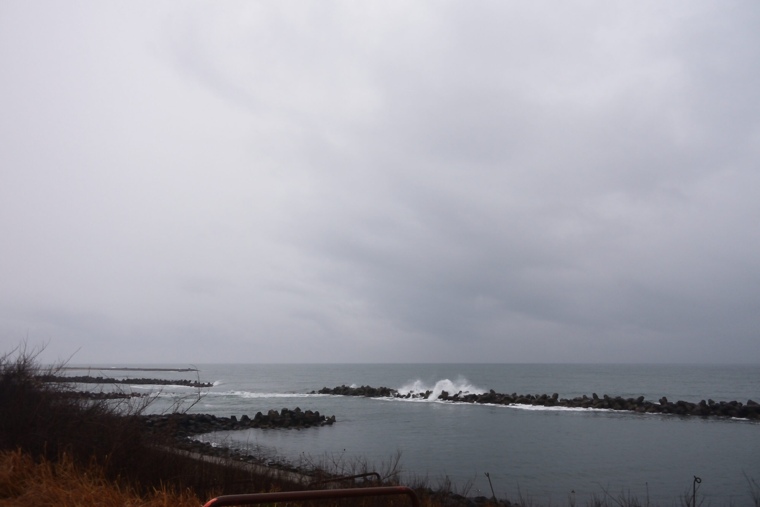 海は静かです。カモメの姿がありません。たまーに大きな飛沫が上がります。