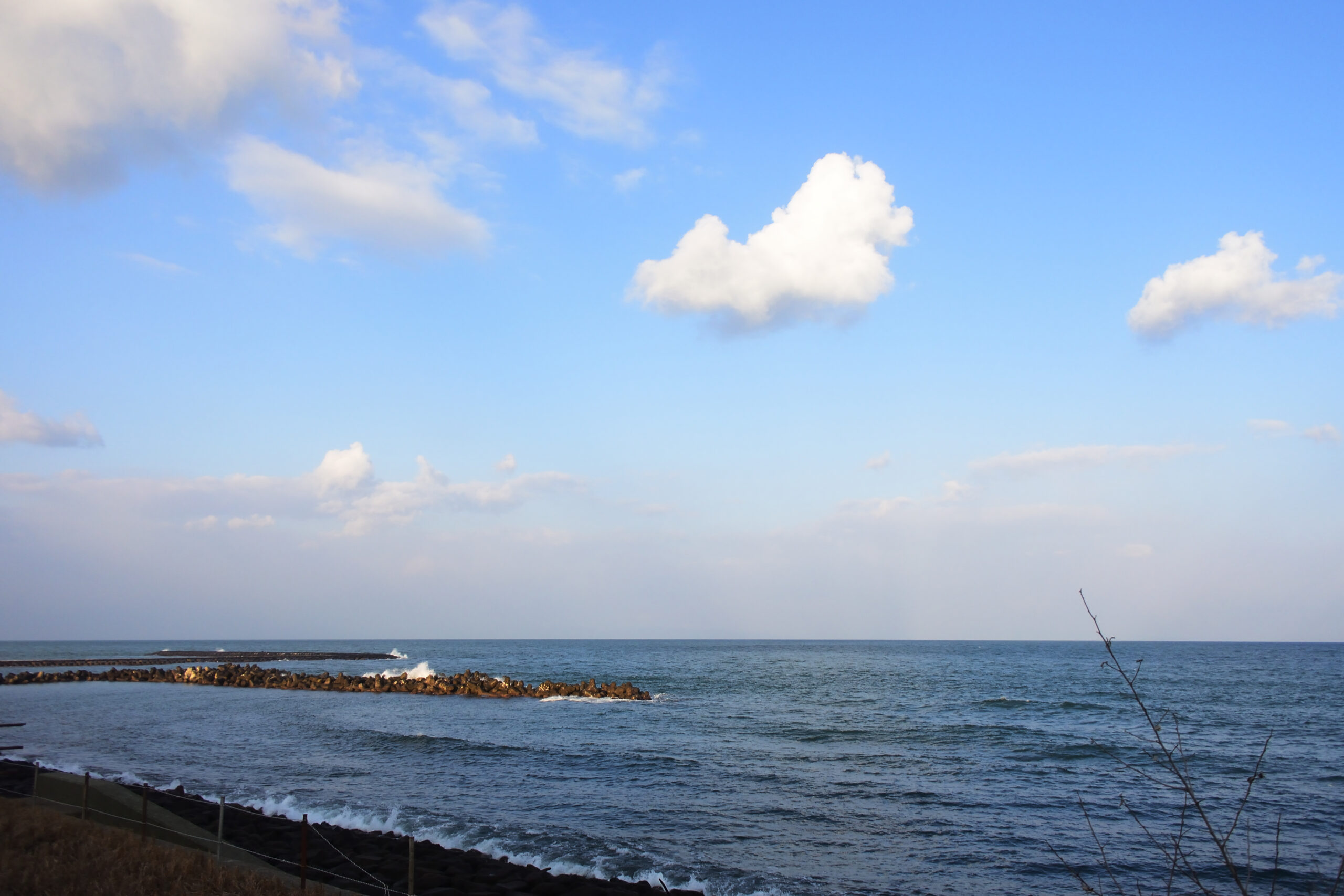 海は小さな波が寄せています。リズミカルな波の音が聞こえています。