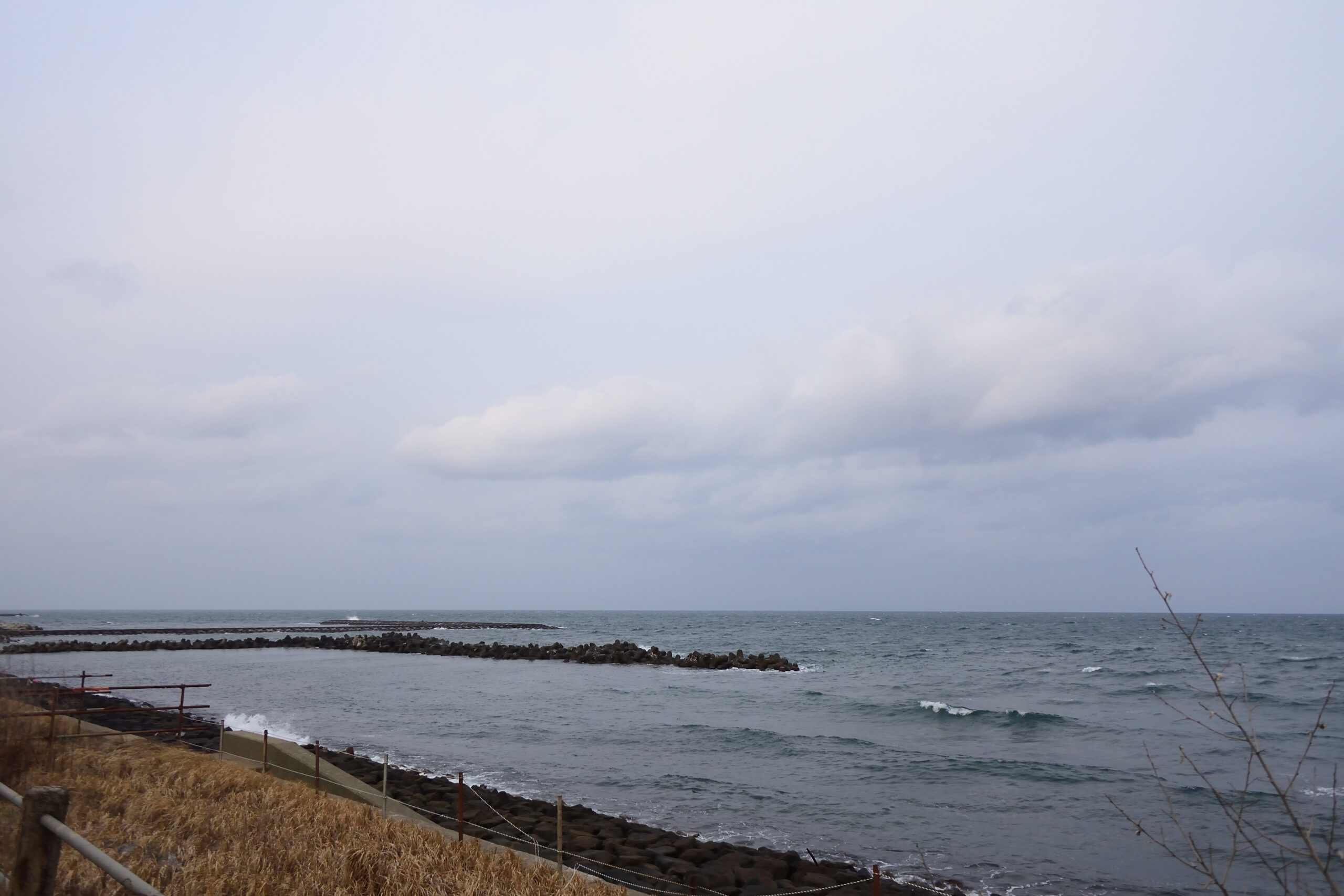 北西の風が吹いています。海岸に着くと波が立ち始めていました。