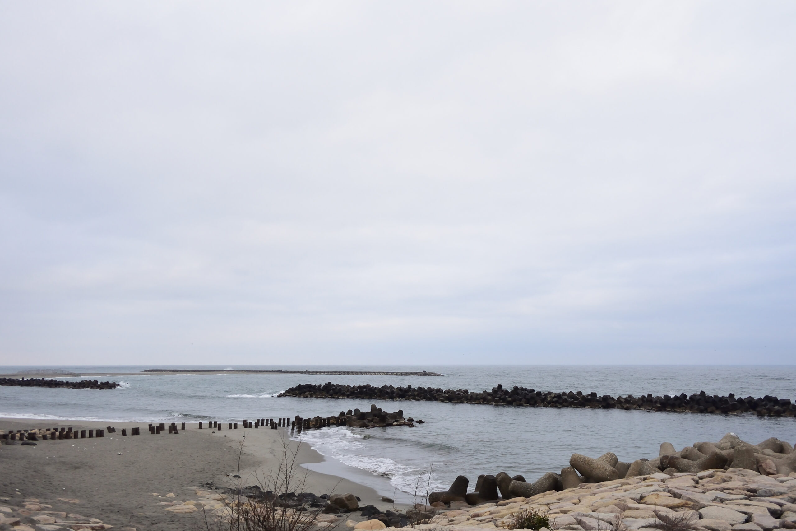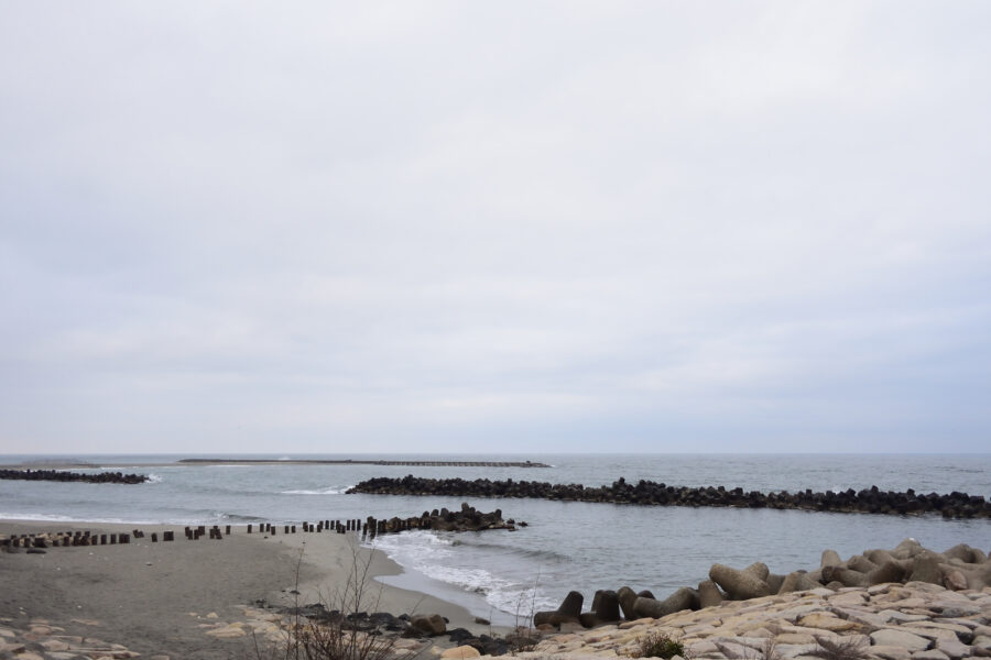 波打ち際から大きめの波の音が聞こえてきます。今朝も佐渡ヶ島は見えませんでした。