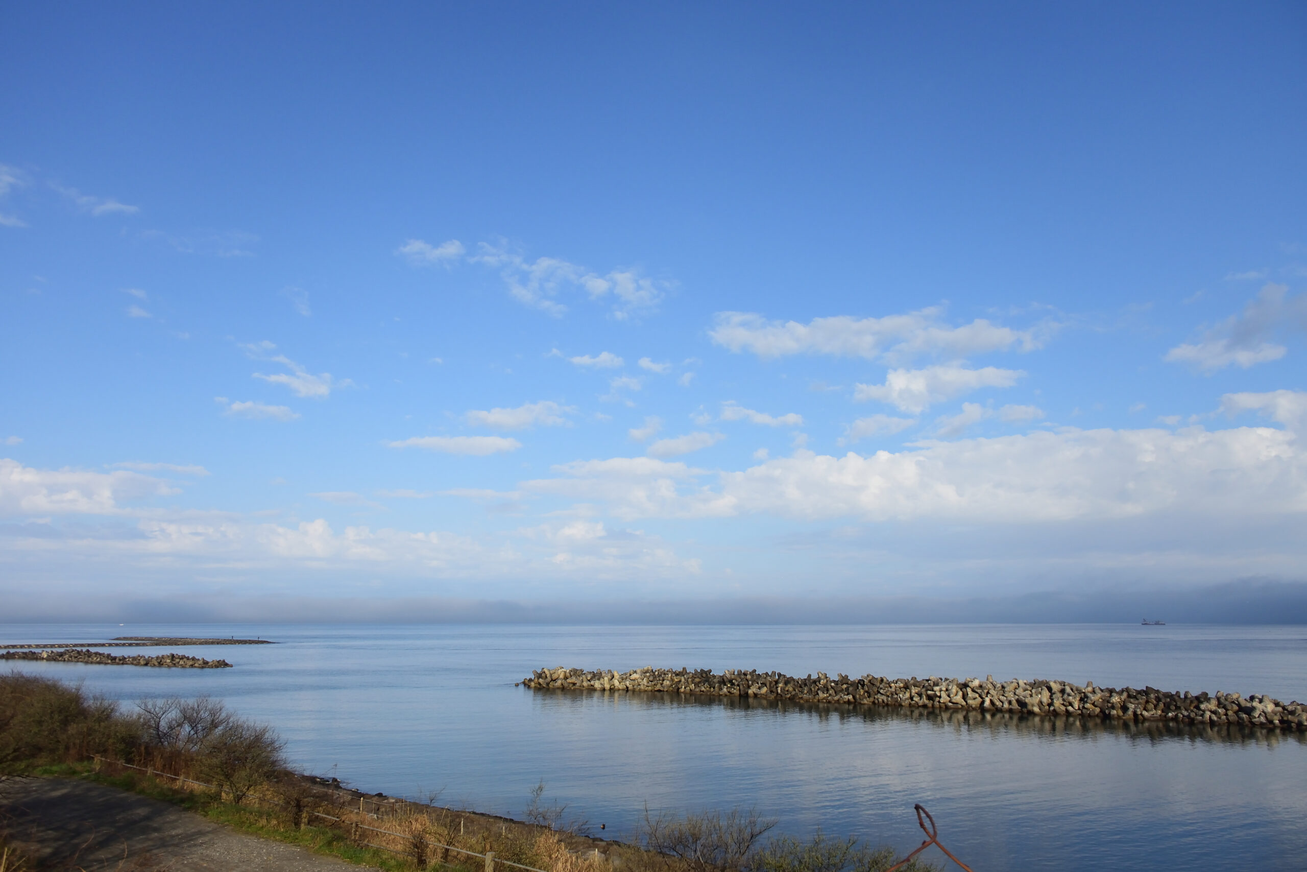 沖は雲が多くて佐渡ヶ島は見えませんでした。暖かくなりそうです。