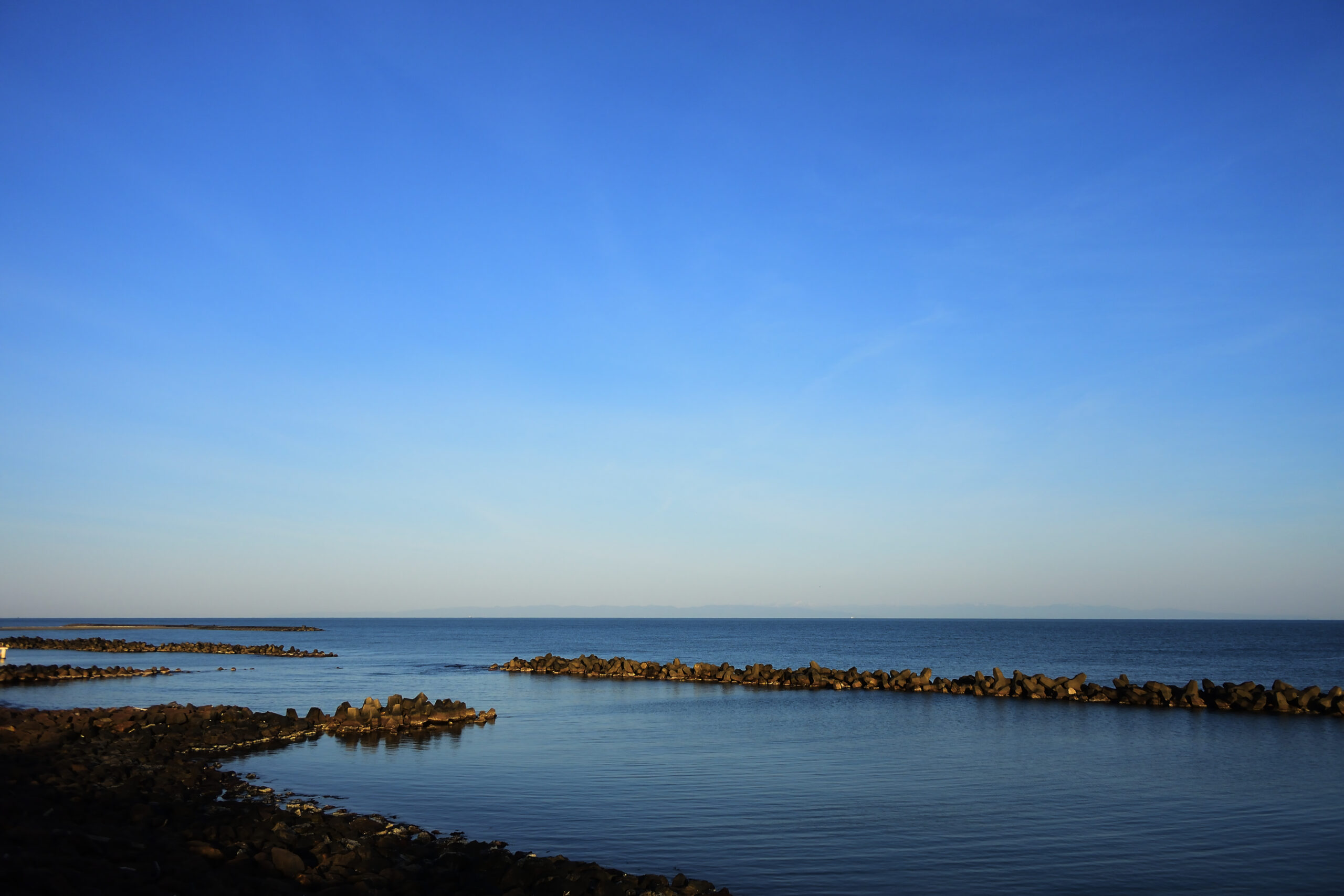 波はほぼ無し、静かです。久しぶりに佐渡ヶ島の全体が見えました。