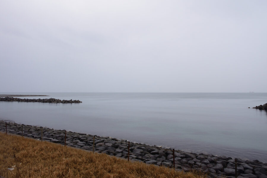 佐渡ヶ島は見えそうにありませんでした。静かな朝です。