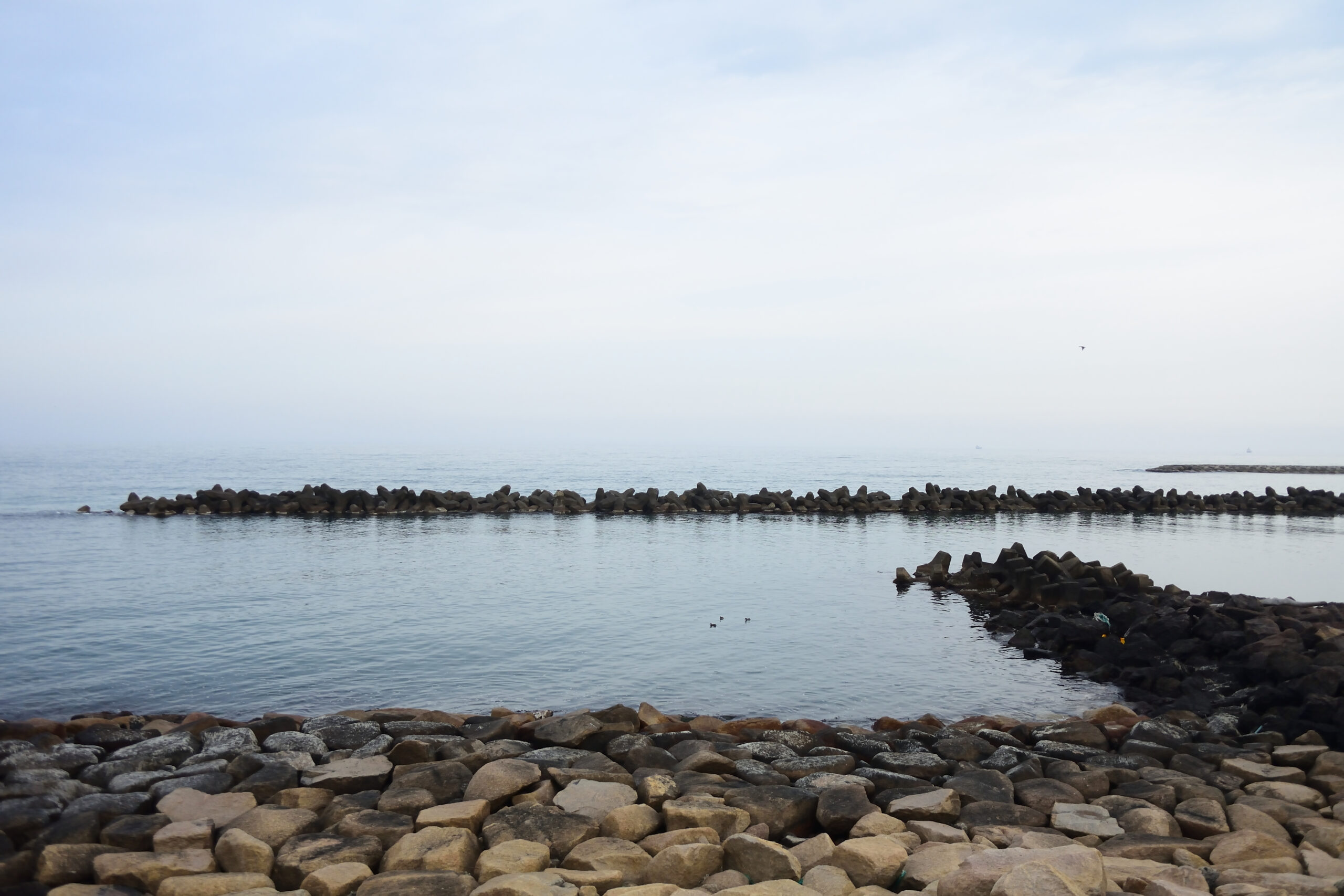 堤防沿いを歩いていたら海面に点が見えました。