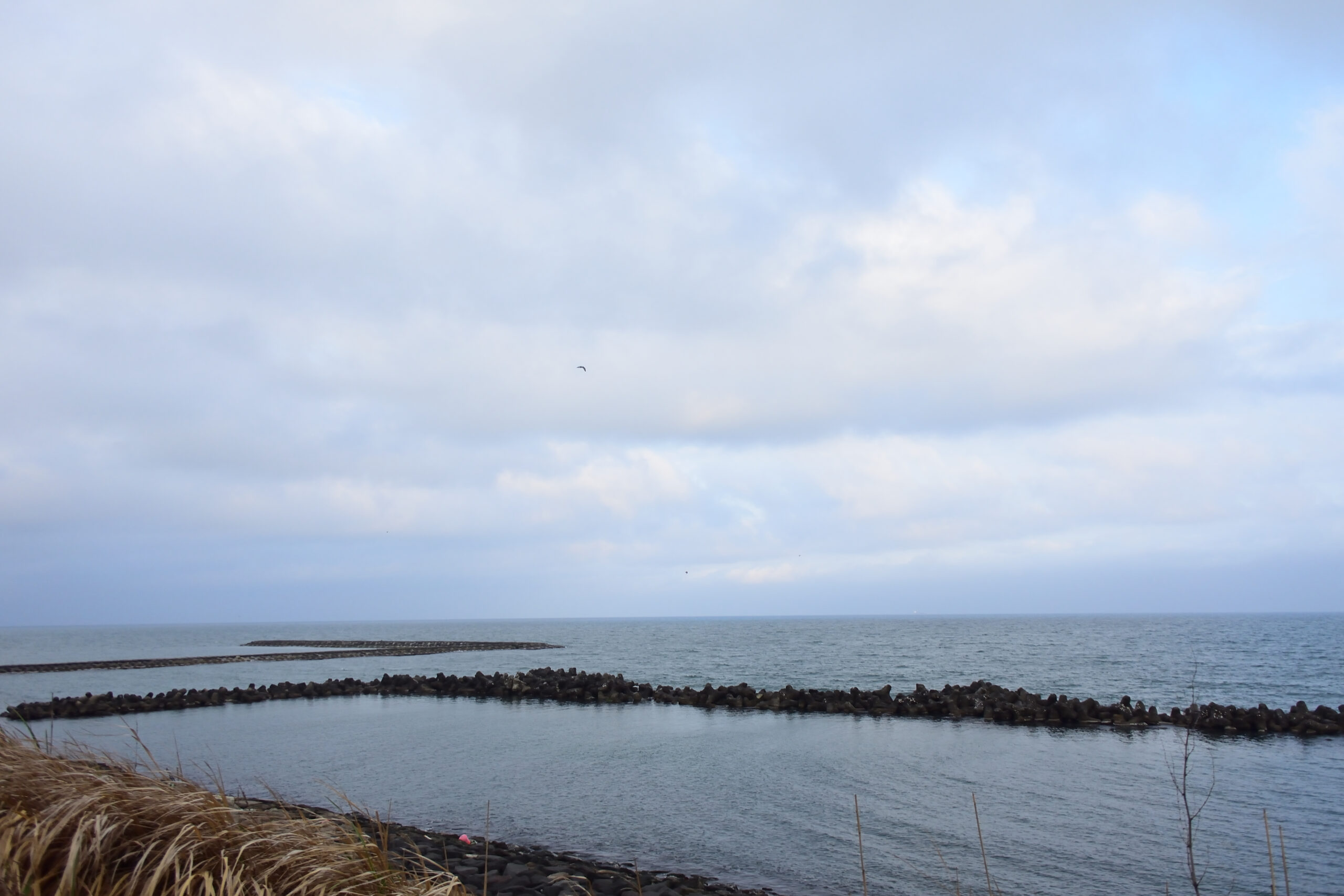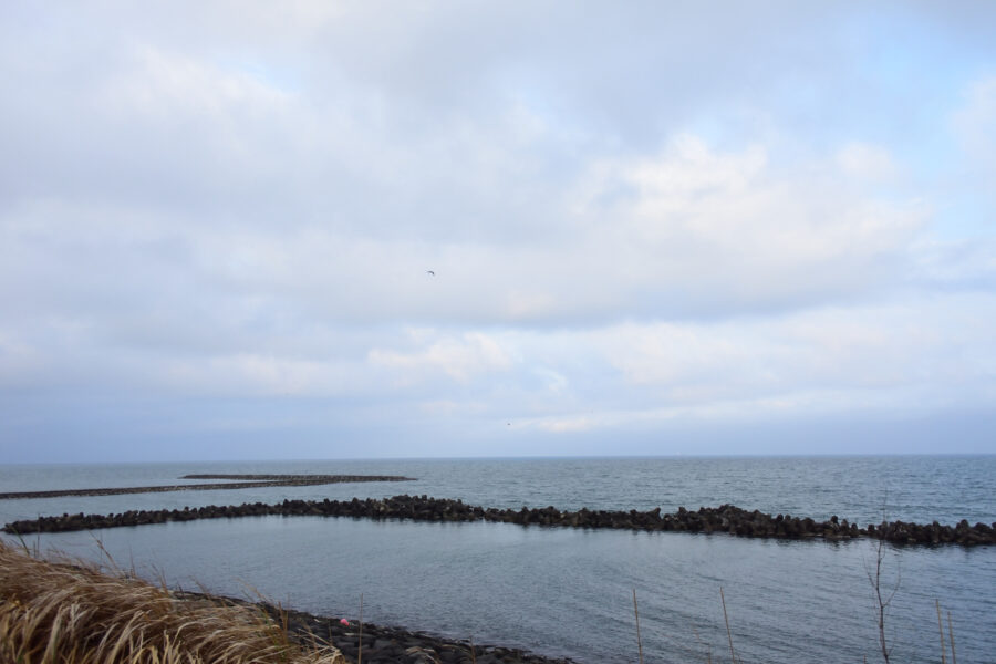 海岸では北の風が吹いていました。佐渡ヶ島は見えません。